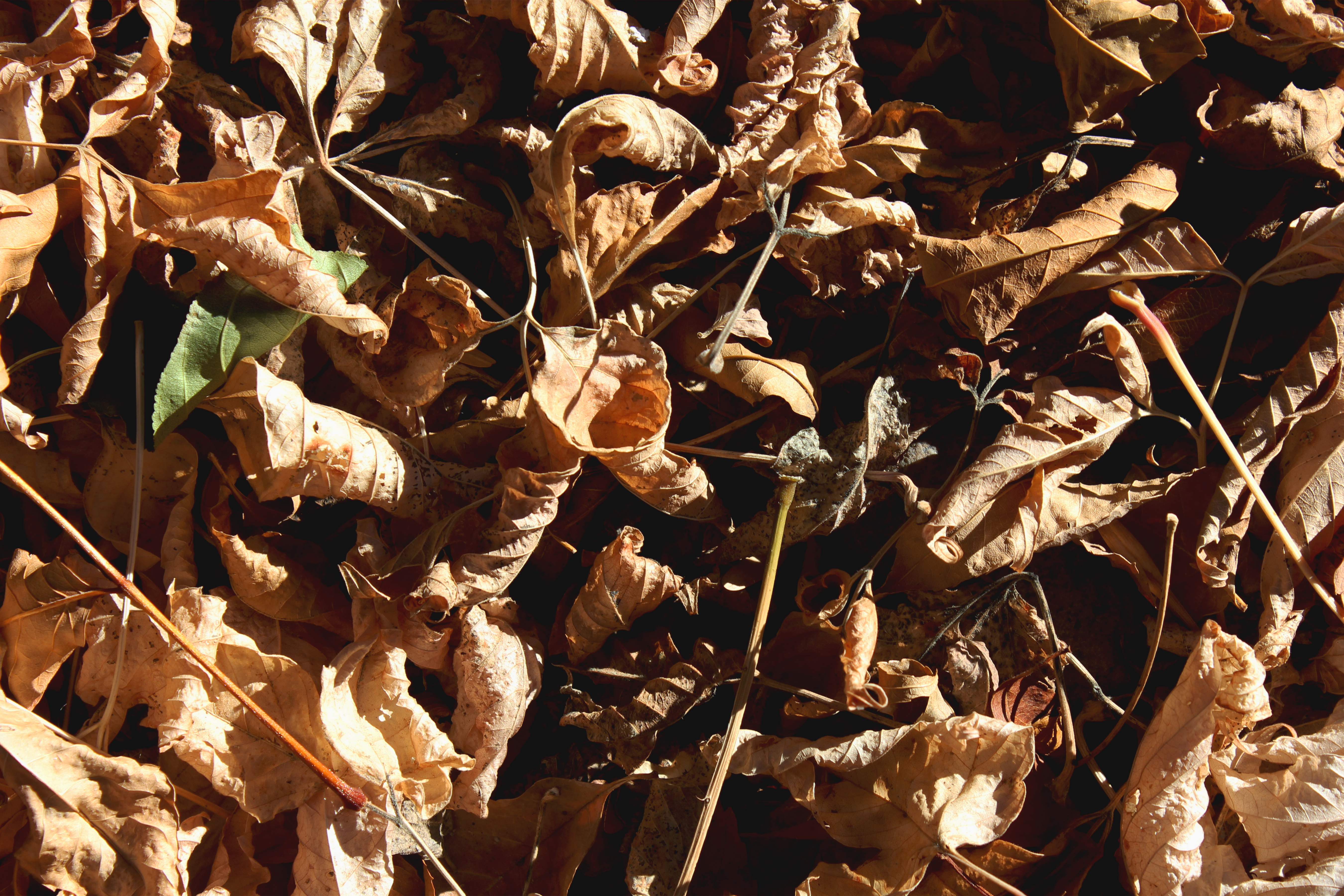 Las fotos surgen en contestación a la actividad que lleva a la gente a ver como cambian de color ciertas especies de arboles. Los “leaf-peepers” pasan horas hipnotizados viendo el cambio de color de las hojas antes de que se conviertan hojarasca. Los encuentras en las orillas de las carreteras, con las cámaras viendo hacia arriba. Este colorido impresionante también se encuentra a la orilla de la casa, con las cámaras viendo hacia abajo, solo hay que vivir con los sentidos.